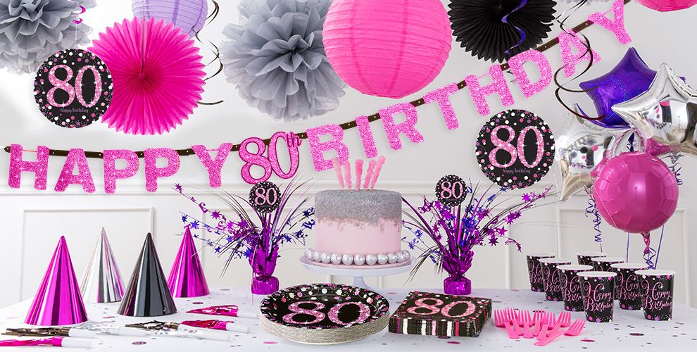 Pink Celebration 80th Birthday Party Supplies Party City IE
